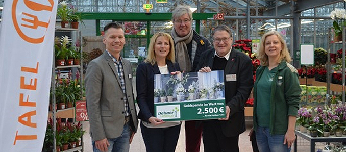 Kunden aus der Region konnten sich aktiv an der wohltätigen Aktion beteiligen. Hierfür wurden Spendendosen im Garten-Center aufgestellt, zusätzlich stockte die Dehner-Stiftung die eingegangene Summe großzügig auf. Die Spende ist Teil einer Hilfsaktion für die Tafeln und andere soziale Organisationen in ganz Deutschland und Österreich. Insgesamt förderte die Dehner-Stiftung verschiedene Einrichtungen mit 50.000 Euro.