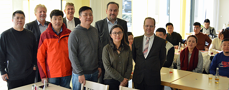 (hintere Reihe v.l.): Christoph Schwab (Geschäftsführer DRK-Kreisverband Fulda e.V.), Markus Otto (Geschäftsbereichsleiter Senioren DRK-Kreisverband Fulda e.V.), Sigurd Gawinski (Geschäftsführender Gesellschafter Tertia Med GmbH) umrahmt von Delegierten aus Peking