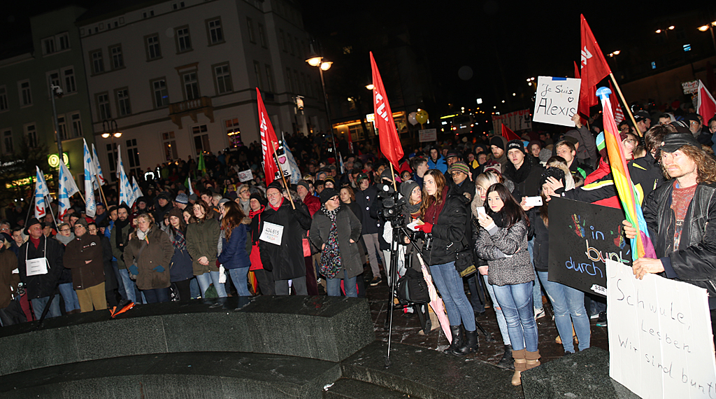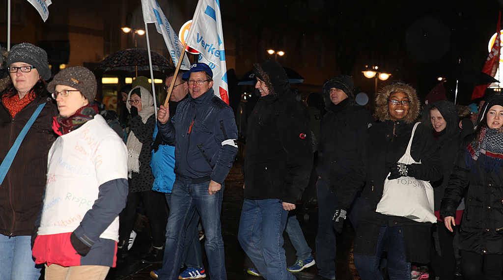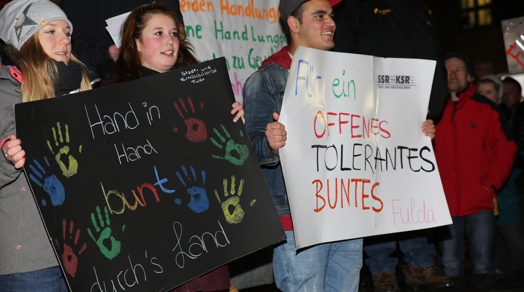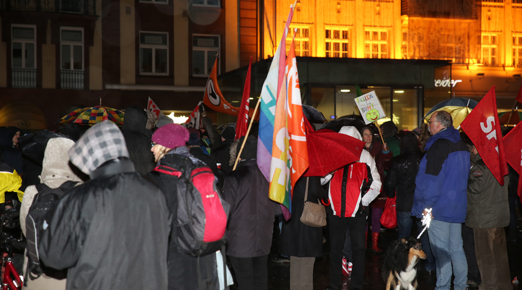 Fulda. Im osthessischen Fulda fand am Montagabend eine Demo gegen Fremdenfeindlichkeit, Rassismus, Antisemitismus und Islamophobie statt. Der Fuldaer Ableger der Pegida-Bewegung “Fugida”, hatte zu einer zeitgleichen Demonstration am gleichen Ort aufgerufen. Einige Personen hatten sich unter die Demonstranten gemischt. Unter dem Motto "Fulda stellt sich quer" fanden sich laut Veranstalter rund 1000 Teilnehmer zur Demo ein. Nach einer Kundgebung am Bahnhofsvorplatz ging es über die Kurfürstenstraße, Heinrich-von-Bibra-Platz, Schloßstraße, Rabanusstraße zum Universitätsplatz, wo die Veranstaltung mit einer Abschlusskundgebung ausklang. An der Demo hatten neben Oberbürgermeister Möller und Bürgermeister Dag Wehner auch zahlreiche Politiker teilgenommen. OB Möller zeigte sich - trotz des wittrigen Wetters - über so viele Teilnehmer überrascht. Der Rathauschef sagte, das Fulda gerade wegen seiner Geschichte und seiner christlichen Grundorientierung weltoffen sei. Integration erfordert Anstrengungen von beiden Seiten sagte Möller. +++ fuldainfo