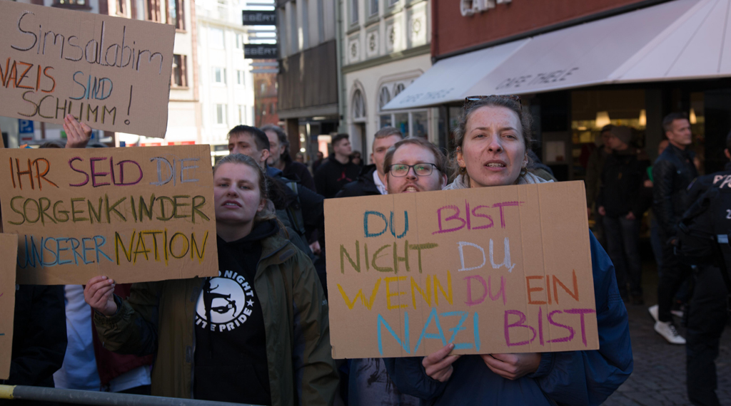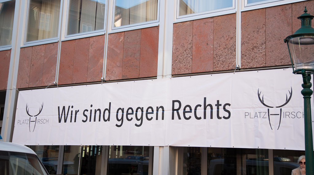 Mehr als tausend Bürgerinnen und Bürger protestierten am heutigen Samstag an verschiedenen Orten im Stadtgebiet gegen eine Demonstration der als rechtsextrem eingestuften Partei "Der III.