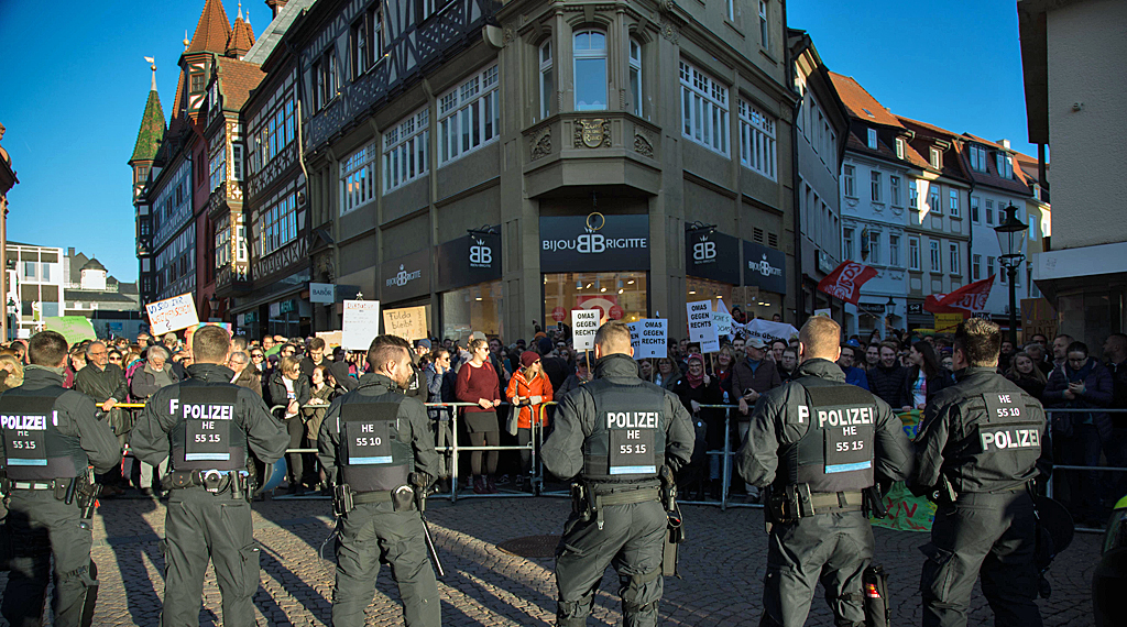 Weg". Aufgabe der Polizei war es, einerseits die Versammlung des III. Weg zu ermöglichen und andererseits den überwiegend friedlichen Gegendemonstrantinnen und Demonstranten ihr Recht auf Versammlungsfreiheit zu gewährleisten. Dabei stand im Mittelpunkt des Polizeieinsatzes, Konfrontationen zwischen den Gruppierungen zu unterbinden.
