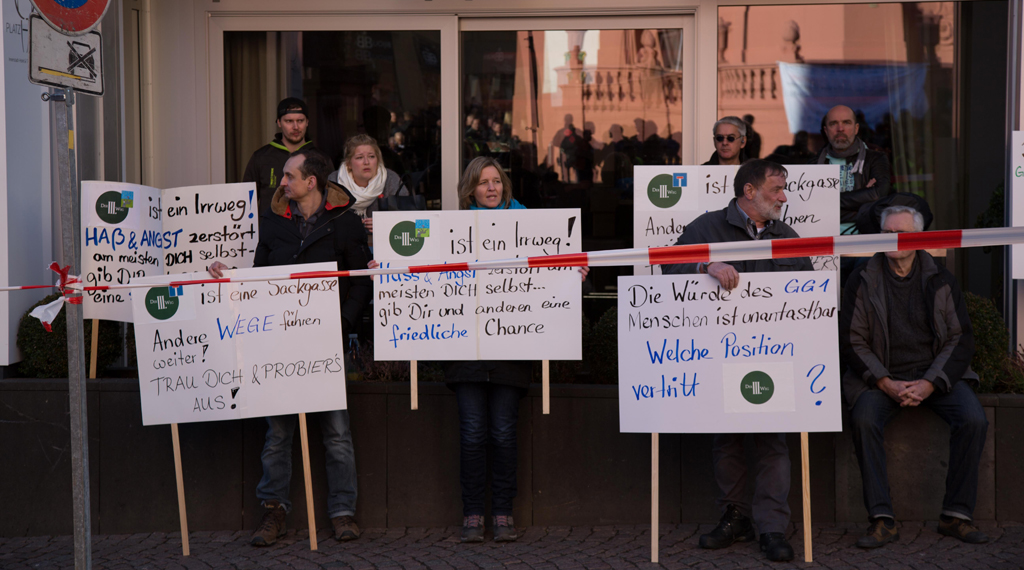 Mehr als tausend Bürgerinnen und Bürger protestierten am heutigen Samstag an verschiedenen Orten im Stadtgebiet gegen eine Demonstration der als rechtsextrem eingestuften Partei „Der III.
