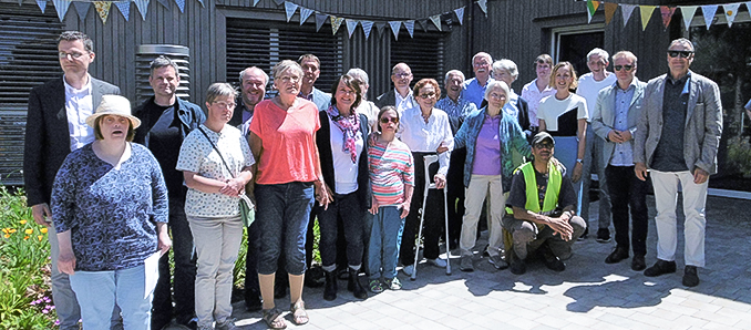 Stellvertretend für die Bewohnerinnen betonte Heidi, dass ein Haus ohne Bewohner leer sei, ohne Bewohner gäbe es auch keine Mitarbeiter. Sie ergänzte, dass die Menschen Hohenroths so ein Haus wie das Zentrum auch schon früher hätten gebrauchen können. Zum Glück gäbe es einen Koch, Aufzüge, schöne Bäder und Zimmer mit genügend Platz, freute sie sich. Leider sei der erste Bewohner bereits im Zentrum gestorben. „Er hätte den heutigen Tag bestimmt sehr gerne miterlebt“, endete Heidi. Birgit Grimm, Leiterin des Zentrums, betonte die Wichtigkeit der Selbstbestimmung der Bewohnerinnen und bedankte sich für die zahlreiche Unterstützung von außen. Sie freue sich, heute etwas zurückgeben zu dürfen. Die anschließende Führung durch den Neubau wurde durch Birgit Grimm und Mario Kölbl begleitet.