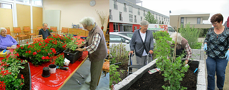 Petersberg. Die soziale Betreuung des DRK-Seniorenzentrums “Am Roten Rain“ lud interessierte Bewohnerinnen und Bewohner ein, sie bei der Bepflanzung der Balkon-und Außenkästen zu unterstützen. Die Bewohnerinnen und Bewohner erfreuten sich sehr am Anblick der bunten Farbenpracht der Pflanzen von Claudia Fleck vom „Blumenlädchen“ Niederbieber. Das Team der sozialen Betreuung um Ramona Afelt erhielt aber auch an diesem Tag tatkräftige Unterstützung durch die „Rappelkiste“ – die Kinderbetreuung vom DRK. Die kleinen Helfer packten fleißig mit an und konnten im hauseigenen „Kräutergarten“ auch mal schnuppern und probieren. Einige Kräuter waren ihnen aus ihrer Heimat bekannt und sie berichteten, wie sie die Kräuter als Hausmittel verwendeten. Mit großer Freude und viel Spaß begaben sich dann sogar einige auf den Barfußpfad im Garten der Einrichtung. Das war ein großer Gaudi – auch für die Bewohnerinnen und Bewohner. Zum Abschluss sang man noch gemeinsam ein Bewegungslied und man verabschiedete sich sehr herzlich. Alle freuen uns schon auf ein baldiges Widersehen. +++