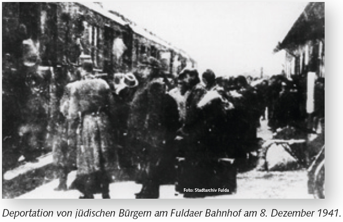 Im Dezember 1941 beginnen die Deportationen der noch im Raum Fulda verbliebenen Juden. Sie werden nach Osteuropa in Konzentrations- und Vernichtungslager gebracht. Nur wenige überleben. Am 23. März 1943 werden etwa 130 Sinti vom Fuldaer Bahnhof aus nach Auschwitz deportiert.