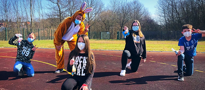 Keine Wandertage, keine Ausflüge, keine sportlichen Aktivitäten, keine schulischen Veranstaltungen – im Moment sieht der Schulalltag der Eichenzeller Schülerinnen und Schüler eher trist aus. Um ihnen trotzdem unter Einhaltung der Hygieneregeln ein bisschen Spaß zu bieten, ließ sich die Schülervertretung (SV) der Von-Galen-Schule etwas Besonderes einfallen. Ein waschechter „OsterHAAS“ holte die Kinder ab und suchte gemeinsam mit ihnen und den Klassenlehrerinnen und Klassenlehrern der fünften und sechsten Klassen nach den versteckten Osternestern. Im Kostüm steckte Franz-Josef Haas, SV-Lehrer der Von-Galen-Schule, der seinem Namen alle Ehre machte. Trotz Maske und Abstand waren alle mit großer Begeisterung dabei. „Eine wahrlich gelungene Aktion, die allen Beteiligten viel Freude bereitet hat“, resümierte Diana Bott, Klassenlehrerin der R5a. Auch die Schülerinnen und Schüler im Distanzunterricht konnten dieses Erlebnis über das Internet in Form eines kurzen Videoclips miterleben. Gerade in Corona-Zeiten, in denen die Schulgemeinde nicht beisammen sein kann, seien solche Projekte wichtig, um die Verbundenheit der Schüler untereinander und mit der Schule zu erhalten, so Franz-Josef Haas. Die Aktion kam sogar so gut an, dass der Osterhase auch der Grundschule Eichenzell einen Besuch abstattete.