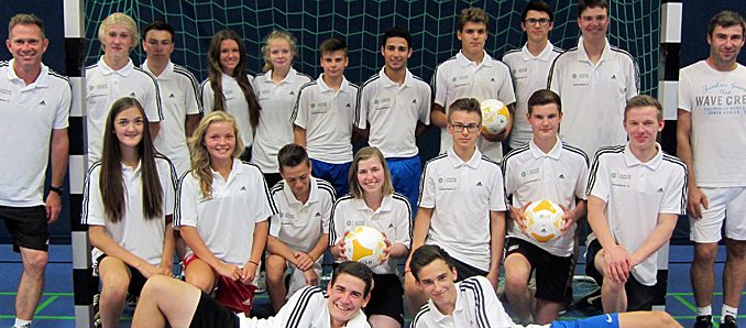 Kurz vor Beginn der großen Ferien haben die 18 Nachwuchstrainer die offiziellen Zertifikate erhalten, die ihnen den gelungenen Abschluss der DFB-JUNIOR-COACH-Ausbildung bescheinigen. Zudem erhielten die Schülerinnen und Schüler jeweils ein Starter-Kit von der Commerzbank AG. Das Starter-Kit enthält eine Grundausstattung für die jungen Nachwuchstrainer, unter anderem Trillerpfeife und USB-Stick, und wurde ebenso wie fünf Fußbälle für die Schule von Commerzbank-Patin Carina Kümmel übergeben.