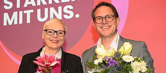 Auf der 7. ordentlichen Bezirkskonferenz des Deutschen Gewerkschaftsbundes (DGB) Hessen-Thüringen haben die Delegierten den Bezirksvorsitzenden Michael Rudolph mit rund 97 Prozent der Stimmen im Amt bestätigt. Der 48-Jährige tritt damit seine dritte Amtszeit an, nachdem er erstmals 2017 gewählt worden war. Zur stellvertretenden Vorsitzenden wählten die Delegierten erneut Renate Sternatz. Die 62-Jährige erhielt rund 95 Prozent der abgegebenen Stimmen und übernimmt das Amt damit zum zweiten Mal. Beide bedankten sich bei den Delegierten aus Hessen und Thüringen für das ausgesprochene Vertrauen.