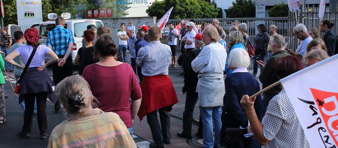 Fulda. Unter dem Motto "Heimatzeitung ohne Hemmungen" hatte der DGB-Kreisverband Fulda und seine Bündnispartner zu einem Protestmarsch mit anschließender Kundgebung vor dem Haupttor Parzeller eingeladen. Gekommen waren etwa 70 - 80 Teilnehmer. Die Veranstalter hatten mit etwa 300 gerechnet. Möglicherweise hätte man doch Flyer drucken müssen, so Rolf Müller vom DGB-Kreisverband Fulda.