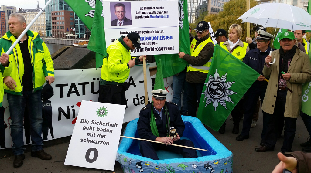 De Maizière wird vorgeworfen, sich seiner Verantwortung zu entziehen, in diesem Sinne beschuldigt die Gewerkschaft der Polizei (GDP), den Innenminister, die geplante Stellenaufstockung für das Jahr 2015, dem Haushaltsziel der Schwarzen Null geopfert zu haben. Bundespolizistinnen und Bundespolizisten, sowie Verwaltungsbeamte und Tarifbeschäftigte, folgten mit ihrem heutigen Aufruf, der GDP – Bezirk Bundespolizei. Der Vorsitzende der Gewerkschaft, Jörg Radek, verdeutlichte in seiner Rede, dass der berufliche Alltag in der Bundepolizei, inwischen mehr als angespannt ist. Bundesweit würden über 1.600 Polizisten fehlen. Bis zum Jahr 2017, fordert die Gewerkschaft der Polizei, 1.666 zusätzliche Stellen. Die GDP hofft, dass die Stellenstreichungen, bei der anstehenden Haushaltsberatung im Bundestag, von der Großen Koalition, korrigiert wird.