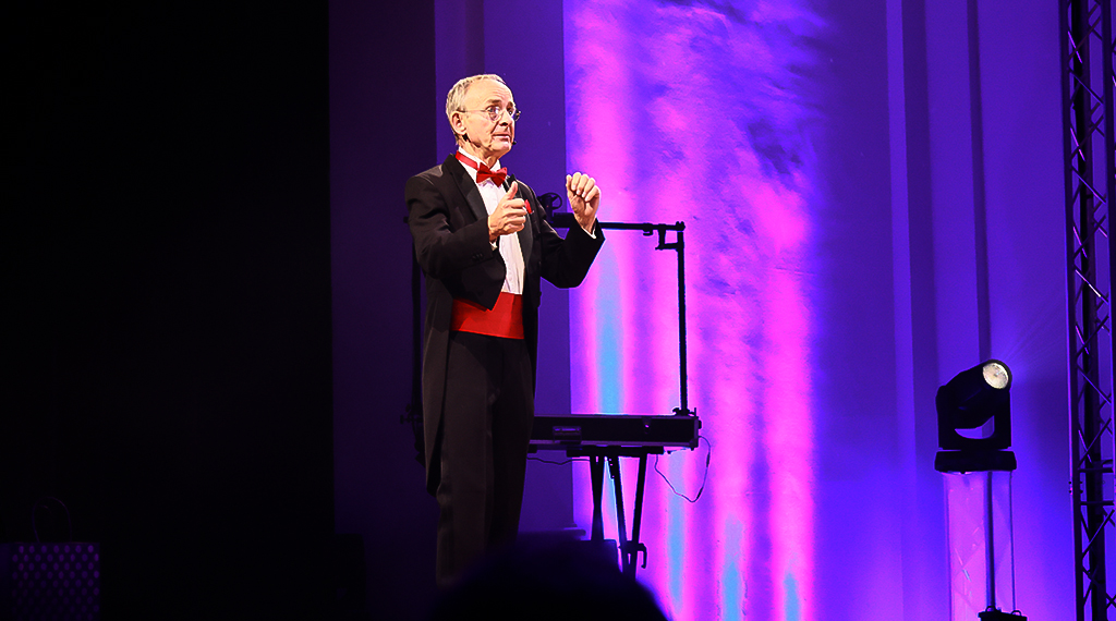 Mit einer Mischung aus Artistik, Comedy und Jonglage wurde am Samstagabend in der Orangerie eine weitere Ausgabe des Fuldaer Wintervarietés verabschiedet. Bei seinem fünften Gastspiel in der Barockstadt entführte der Schweinfurter Varietékünstler und Showproduzent Dirk Denzer (Dirk Denzer Performing Arts) die über 500 Gäste in fantasievolle Traumwelten. Die traditionsreiche Varieté-Gala bot erneut ein vielseitiges Programm, das unterschiedliche künstlerische Elemente miteinander verband und für einen unterhaltsamen Abend sorgte.