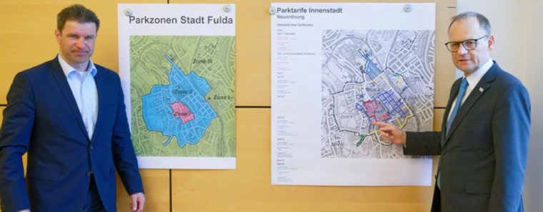 Thomas Flügel, Leiter der Abteilung Straßenverkehr und Parken und Bürgermeister Dag Wehner.