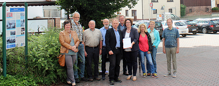 Susanne Simmler (Bildmitte) übergibt Bescheid