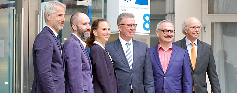 Das neue Präsidium mit Michael Döppner, Thomas Gutberlet, Anika Wuttke, Dr. Christian Gebhardt, Roland Vollmer und IHK-Hauptgeschäftsführer Stefan Schunck (v. li.)