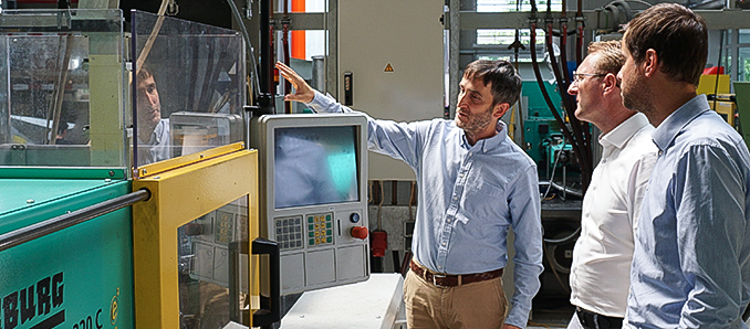 Denn die zahlreichen Spritzgießmaschinen, von denen einige mit dem Druck von bis zu 450 Tonnen das erhitzte und zähflüssige Kunststoffgranulat in die Werkzeugformen pressen, laufen im Dreischichtbetrieb und benötigen viel Energie. Zwar soll bald eine leistungsstarke Photovoltaikanlage an den Start gehen, und die Werkhallen werden fast ausschließlich durch die Abwärme der Maschinen geheizt, „doch steigende Energiepreise sind dennoch eine Herausforderung“, sagt Unger. Diese Widrigkeiten bringen das Unternehmen aber nicht von seinem Wachstumskurs ab: (Nachwuchs-)Fachkräfte werden gesucht und auch selbst ausgebildet. In guten Jahren waren es bereits bis zu zehn Auszubildende und der Bedarf ist nach wie vor da. +++ pm