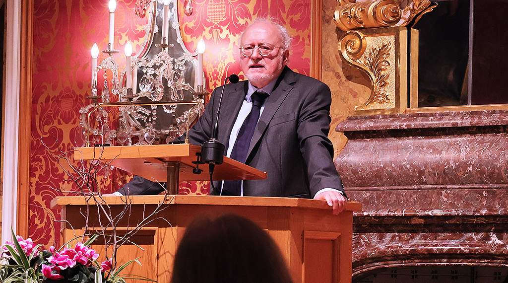 Dr. Thomas Heiler dankte in der Feierstunde posthum dem früheren Fuldaer Oberbürgermeister Dr. Wolfgang Hamberger und Kulturamtsleiter und Historiker Dr. Werner Kirchhoff dafür, die Geschichte der Stadt verwalten und mitbestimmen zu dürfen. „Sie haben in mir offenbar jemanden erkannt, der für das Thema gebrannt hat“, so Dr. Heiler, dem es Motivation war, zu zeigen, wie bedeutend die fuldische Geschichte in der Vergangenheit gewesen war und in der Gegenwart ist. „Man denkt immer, dass Geschichte etwas Vollendetes sei, etwas, das man auswendig lernen kann – natürlich versuchen wir als Historikerinnen und Historiker immer neue Erkenntnisse hinzuzufügen –, aber letztlich geht es darum, immer wieder neue Fragen an die Geschichte zu stellen, und die stellen sich in unterschiedlichen Zeiten ganz anders.“