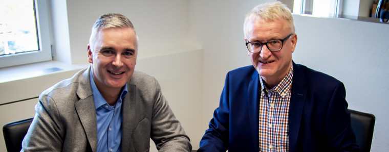 Ralph Burkhardt (links) und Dr. Wolfgang Dippel bei der Vertragsunterzeichnung.
