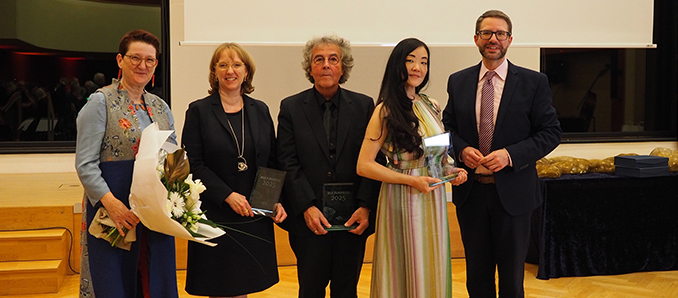 Nashi Young Cho, Martina Tornow und Harry Wenz dankte der Landrat für ihr umfangreiches kulturelles Wirken: „Sie alle sind Botschafter oder besser: kulturelle Leuchttürme, deren Feuer weit in die Region hinausstrahlt. Mit ihrem Schaffen bereichern sie unsere Lebenswelt. Sie stehen für Offenheit, Vielfalt und Haltung.“ Alle drei Preisträgerinnen und Preisträger zeigten sich sichtlich gerührt und betonten später, wie sehr sie die Auszeichnung ehre und motiviere.
