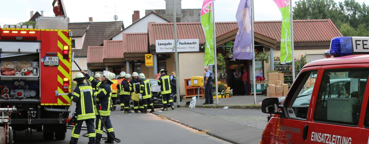 Nieder-Ohmen. Drei Menschen wurden am Donnerstagmittag bei einem schweren Verkehrsunfall auf der Kirschgartener Straße in Nieder-Ohmen verletzt. Laut Polizeiangaben fuhr ein 69-jähriger Autofahrer aus dem Landkreis Marburg-Biedenkopf in Richtung Ortsmitte, bevor er aus noch ungeklärter Ursache die Kontrolle über sein Fahrzeug verlor. Der 69-Jährige kam nach links von der Straße ab, durchfuhr den Gegenverkehr und prallte vor einem Gartenmarkt frontal gegen ein am Fahrbahnrand stehendes Auto. Wie die Polizei informierte, hantierte dessen 72-jägriger Besitzer gerade am Kofferraum und wurde unter das Fahrzeug geschleudert.