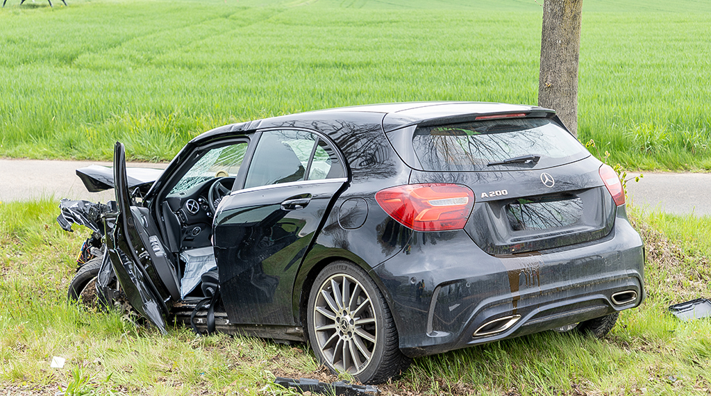 Eine 70-jährige Autofahrerin aus Flieden, die hinter dem Mercedes fuhr, überfuhr auf der Fahrbahn liegende Trümmerteile und beschädigte dabei ihren VW. Sie blieb unverletzt.
