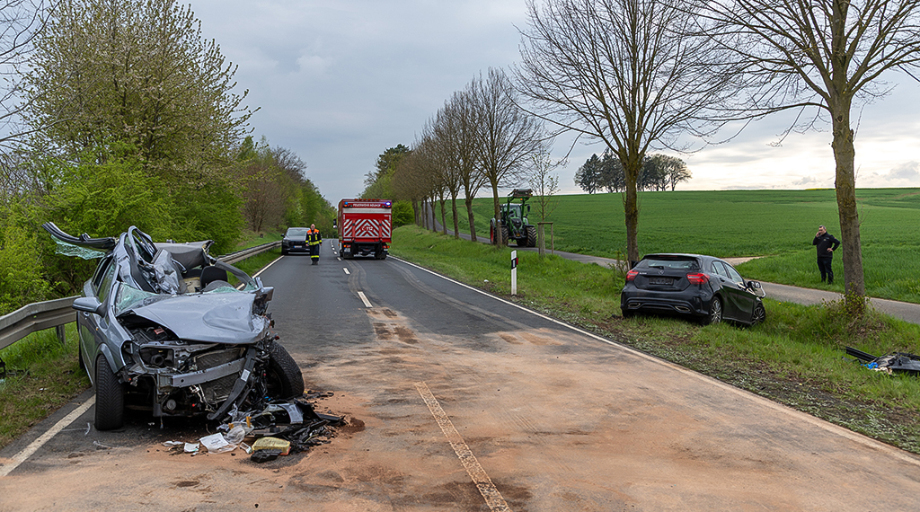 Durch die Wucht des Aufpralls wurde der Mercedes von der Fahrbahn geschleudert und kam im rechten Straßengraben zum Stillstand. Der Opel Astra wurde nach links abgewiesen und gegen eine Schutzplanke gedrückt. Sowohl die beiden Fahrzeugführer als auch ein 29-jähriger Mitfahrer im Opel, ebenfalls aus Fulda, erlitten schwere Verletzungen. Eine Person musste von der Feuerwehr aus dem Fahrzeug befreit werden.