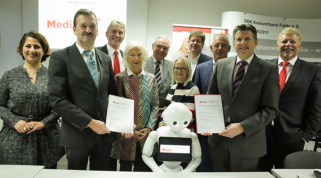 „Ziel des DRK BBZ MediCampus ist eine enge Zusammenarbeit der theoretischen und praktischen Ausbildung in der Altenpflege aber auch in der Altenpflegehilfe vor dem Hintergrund der generalistischen Ausbildung in der Pflege ab 2020“, so Prof. Dr. med. Martin H. Hessmann, Präsident des DRK Kreisverbandes Fulda e. V. zu den Hintergründen. Die Absicht, das Kooperationsprojekt bewusst „MediCampus“ zu nennen und nicht etwa „PflegeCampus“, hat einen einfachen Grund: „Weil wir in der Pflegeausbildung in vielen Bereichen tätig sein wollen.“, so Hessmann, der erläutert: „Wir streben mit diesem Projekt zunächst keinen Profit an, sondern uns geht es in erster Linie darum, Strukturen zu schaffen, in denen wir zunächst eine vernünftige Pflegeausbildung organisieren wollen. Mit der Kooperation haben wir eine perfekte Verzahnung zwischen dem BBZ Mitte und uns, weil wir beide Teilbereiche der Ausbildung anbieten, aber eben nicht das ganze Konzept der pflegerischen Ausbildung. Es ist sozusagen eine Win-win-Situation zwischen diesen beiden Bereichen.“