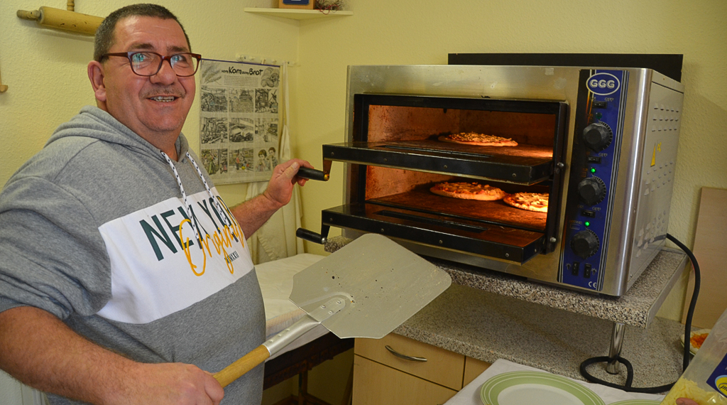 Bei ihrem letzten Monatstreffen verbrachten die Mitglieder der Eichenzeller DRK-Gruppe „Menschen mit Behinderung“ wieder einen erlebnisreichen Nachmittag und sie hatten enorm viel Spaß dabei, heißt es in einer Mitteilung. Die Eichenzeller Backgemeinschaft hatte diesmal die Gruppe in ihr Vereinshaus eingeladen und verwöhnte die gut gelaunten Gäste mit frischgebackener Pizza, hausgemachten Kuchen und Getränken. Backgemeinschaft-Vorsitzender Klaus Donat begrüßte die Gruppe und brachte seine Freude zum Ausdruck, dass die DRK-Gruppe seiner Einladung gefolgt ist. Mit Eifer und Freude durften die Gruppenmitglieder die vom Team der Backgemeinschaft vorbereiteten Pizzaböden mit allerlei Köstlichkeiten selbst belegen.