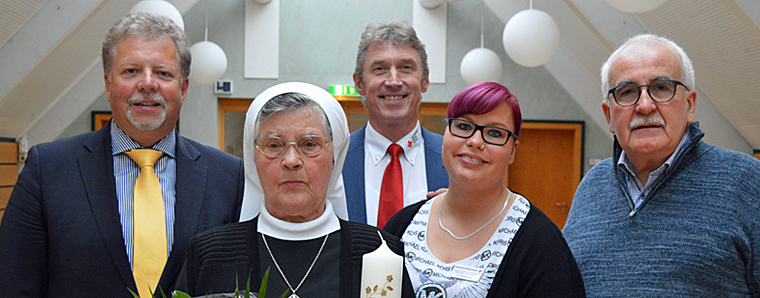 Weitere Glückwünsche an die Vinzentinerin von Seiten der gesamten Belegschaft, folgten im kleinen Festsaal von Heilig Geist. In ihnen vereint waren weiterhin alle guten Wünsche, Gesundheit sowie Gottes Segen. Ebenfalls unter den Gästen war Herr Gerhard Dehler, der ehemalige Einrichtungsleiter des Seniorenzentrums.