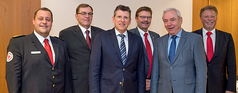 DRK-Präsidium: Christian Erwin (Kreisbereitschaftsleiter), Markus Schleicher (Justitiar), Prof. Dr. Martin H. Hessmann (Präsident), Dr. Andreas Opitz (Vizepräsident), Christoph Schwab (Vorstandsvorsitzender).