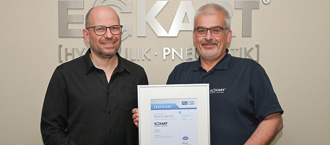 Beim Zertifizierungs-Audit des TÜV Hessen wurde untersucht, wie Eckart Hydraulics in allen Abteilungen aktuell aufgestellt ist, wie gearbeitet, evaluiert und optimiert wird. Besonders positiv fiel den Prüfern auf, dass das Unternehmen bereits seit Jahren sehr aktiv im Bereich Umweltmanagement ist.