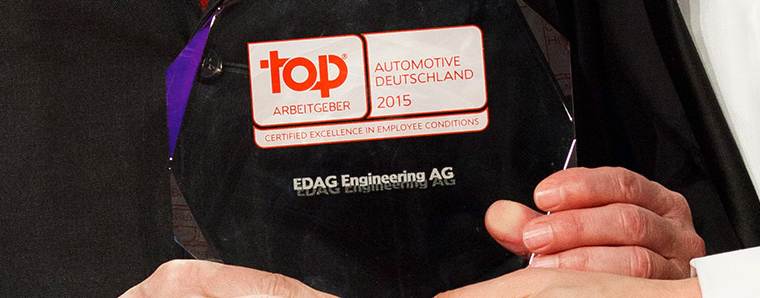 Fulda. Die EDAG Engineering AG wurde als Top Arbeitgeber für ihr ausgezeichnetes Personalmanagement am 19.02.2015 in Düsseldorf bereits zum achten Mal in Folge prämiert. Am Ende der unabhängigen Untersuchung des „Top Employers Institute“ belegte der Wiesbadener Entwicklungsdienstleister in der Kategorie „Automotive“ den hervorragenden 2. Platz. Laut dem Jury-Entscheid bietet das Unternehmen ihren Mitarbeiterinnen und Mitarbeitern herausragende Arbeitsbedingungen. Mit anderen Worten: Das Unternehmen kümmert sich außerordentlich gut um seine Belegschaft.