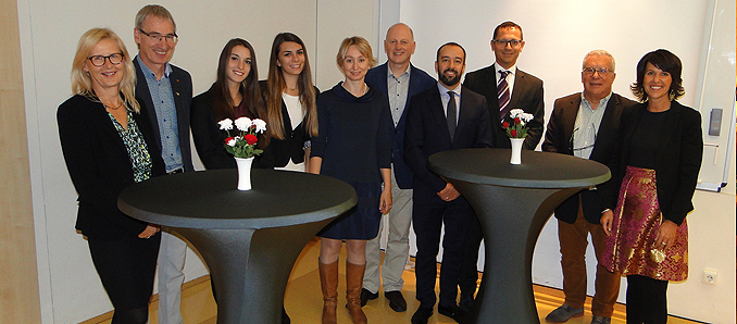 Die italienische Delegation aus Como mit dem Schulleiter der Eduard-Stieler-Schule Fulda, Oberstudiendirektor Jörg Demuth (Bildmitte), Dr. Mariachiara Bernasconi (Bildmitte) sowie den Abteilungsleitern Studiendirektorin Anke Bischof (links außen), Studiendirektor Thomas Willert (2. v. l.) und Studiendirektorin Margit Goldstein (rechts). Foto: Ursel Schiffhauer