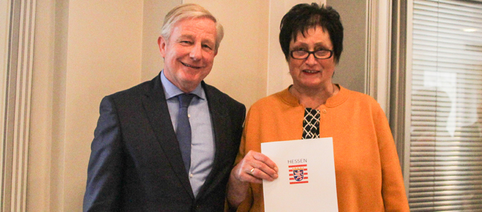 Der Bürgermeister kennt Edeltraud Reith und ihre Familie ziemlich gut. „Ich weiß, dass sie sich stets darum kümmert, dass es den Kindern, Schwiegertöchtern und Enkeln immer gut geht. Die Enkel habe ich von Kindesbeinen aufwachsen sehen und weiß, welch hohen Stellenwert sie bei ihrer Oma haben und umgekehrt“, berichtete Kolb. Edeltraud Reith zeigte sich überrascht, gerührt und erfreut über die Ehrung seitens des Landes Hessen: „Alles, was ich mache, mache ich gerne. Mir bereitet es große Freude, wenn ich anderen Menschen etwas Gutes tun kann.“