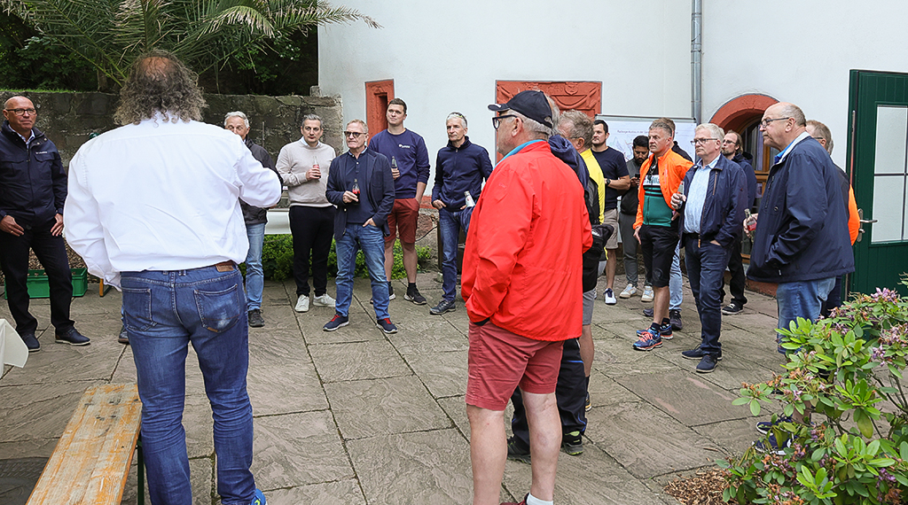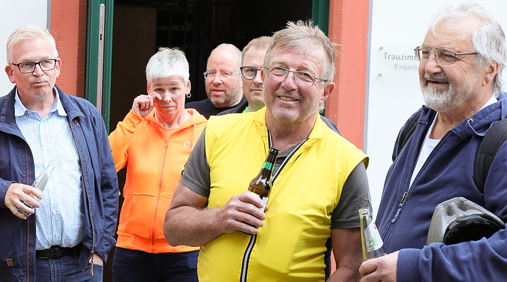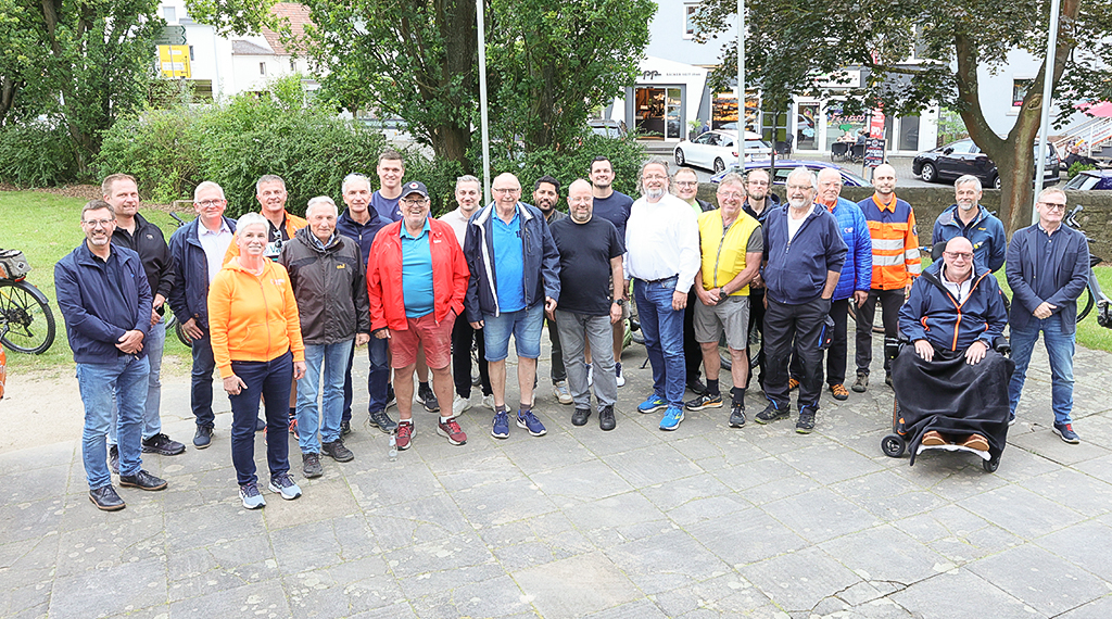 Vertreter der gemeindlichen Gremien um Bürgermeister Johannes Rothmund (CDU) haben sich heute bei angenehmen Temperaturen in der Smart City-Gemeinde Eichenzell bei einer etwa anderthalbstündigen Radtour einen Überblick über die nun abgeschlossenen Baumaßnahmen in der Großgemeinde verschafft. Auf geliehenen E-Bikes des regionalen Rad-Fachhandels VeloCulTour mit Sitz in Neuhof (Kr. Fulda) ging es für die Kommunalpolitiker und Gemeindebediensteten sowie Vertretern der an den Baumaßnahmen involvierten Institutionen und des Landkreises Fulda von der grundhaft erneuerten Bürgermeister-Ebert-Straße im Industriegebiet der Gemeinde, dem Industriepark Rhön, auf den neu ausgebauten Fahrradwegen in die Ortsteile Rothemann, Kerzell, Rönshausen und Lütter. Die E-Bike-Tour endete nach gut 90 Minuten im Schlossgarten des Verwaltungssitzes, dem Eichenzeller Schlösschen, wo sie im Rahmen einer kleinen Feierstunde bei Speisen und kühlen Getränken den Nachmittag ausklingen ließen.