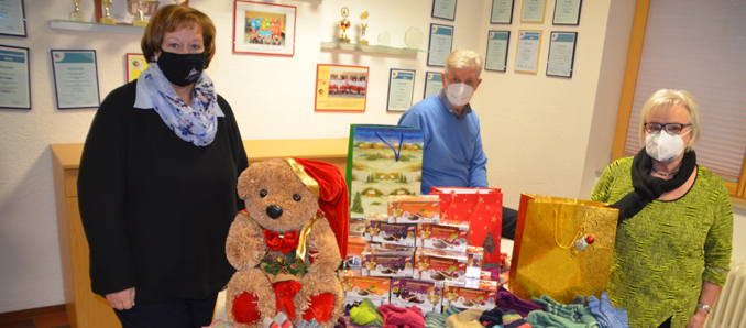 Auch das traditionelle Treffen mit den Eichenzeller Kommunionkindern musste wegen der besonderen Situation in diesem Jahr leider ausfallen. Aus der diesjährigen Aktion „ Spende anstatt Glückwunschkarten“ der Eichenzeller Kommunionkinder überreichte Barbara Kolb einen Betrag in Höhe von 190 Euro an Gruppensprecher Walter Bernhard. Dieser Betrag wurde nun dankbar zur Anschaffung von Weihnachtsgeschenke für die Gruppenmitglieder verwendet. Üblicherweise hat die DRK-Gruppe immer eine besinnliche Weihnachtsfeier organisiert, wo die Gruppenmitglieder und Betreuer immer kleine Weihnachtsgeschenke erhalten und die Aktivitäten der Gruppe Revue passiert wird. An den Weihnachtsfeiern wird denjenigen Gruppenmitgliedern auch immer mit kleinen Geschenken zum Geburtstag gratuliert, welche im Jahresverlauf ihren Ehrentag feiern konnten. Im Corona-Jahr 2020 ist alles anders und es müssen neue Wege bestritten werden. Walter Bernhard und sein Helferteam machten sich Gedanken, wie man alternativ den Gruppenmitgliedern zu Weihnachten eine Freude machen kann. Walter Bernhard ist seit über 20 Jahren mit Hiltrud und Peter Raach aus Maberzell befreundet, die den Verein auch immer großzügig unterstützen. Sie organisierten, das die 90. jährige Mariechen Frauenholz für alle Gruppenmitglieder Strümpfe strickte. So erhalten nun alle Mitglieder der Eichenzeller DRK-Gruppe liebevoll selbstgestrickte Strümpfe und einige Leckereien.