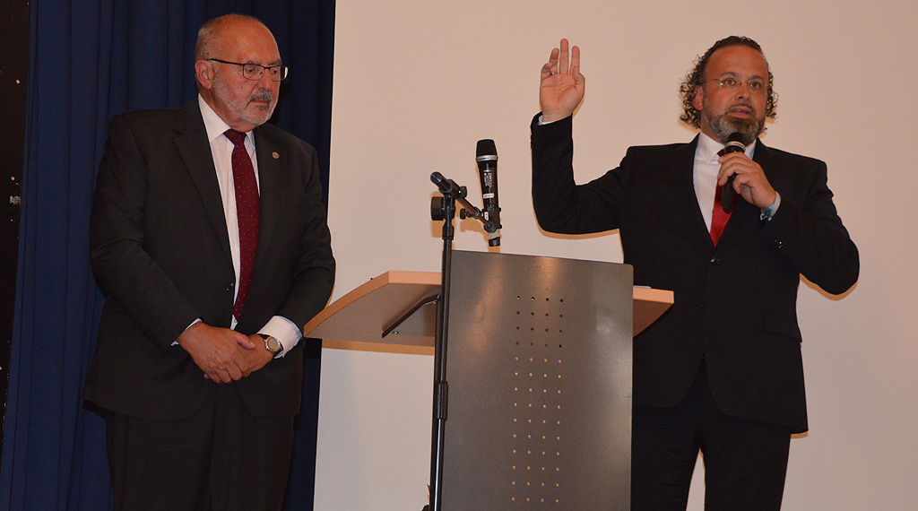 Anschließend wurde Johannes Rothmund vereidigt und er legte seinen Amtseid ab. Der 45-jährige Rechtsanwalt beginnt am kommenden Dienstag seinen ersten Arbeitstag im ehrwürdigen Eichenzeller Schlösschen. In seiner Einführungsrede skizzierte er seine Ziele für Eichenzell und brachte deutlich zum Ausdruck, dass er in seiner Amtszeit einen „kooperativen“ und „stets kommunikativen Führungsstil“ pflegen möchte. Rückblickend auf diverse Konflikte in der Vergangenheit wünscht sich Rothmund von allen Seiten einen Neuanfang. Rothmund: „Bei der Arbeit in der Verwaltung steht der Mensch im Vordergrund.“ Rothmund freut sich nun auf seinen Arbeitsbeginn und auf viele persönliche Begegnungen nach der Corona-Krise. Er versprach ein „offenes Ohr für jeden Bürger“.