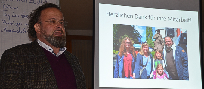 Rothmund griff dieses Problem auf und appellierte daran, das man den Strom an Nachwuchs in den Vereinen auf jeden Fall nicht abbrechen lassen darf. Als einen weiteren Nachteil wurde genannt, dass manche Vereine kein eigenes Vereinshaus besitzen und die Zukunft mancher Vereinsgebäude ungewiss ist. So stellte sich auch Steffen Blaschke von der Back- und Schlachthausgemeinschaft Löschenrod die Frage zur Entwicklung des bestehenden Gebäudes auf dem neuen Mehrgenerationenplatz und sieht hier bedauerlicherweise eine fehlende Perspektive. Trotzdem stellte Johannes Rothmund positiv fest, das es in Eichenzell ein extrem hohes Niveau an Vereinsräumlichkeiten gibt und in diesem Zusammenhang brachte er zum Ausdruck, das für ihn in der Gemeinde ein nachhaltiges wirtschaften für die nächste Generation sehr wichtig sei. Rhönklub-Vorsitzender Thorsten Heiliger nannte als weiteres Problem, das es für die Vereine immer schwieriger wird Helfer zu finden. Erhard Kiszer vom Verein „Leben und Arbeiten in Eichenzell“ lobte die gemeinsame Festveranstaltung seines Vereins mit dem HKV und wünschte sich gleichzeitig mehrere solcher gemeinsamen Festaktivitäten. Als Handlungsfelder notierte sich Rothmund die Vereinsräumlichkeiten, den Tag der Vereine, das Neubürger zur Mitarbeit in den Vereinen motiviert werden sollen und die Einrichtung einer Vereinsbörse. Julian Rudolf von der Feuerwehr Eichenzell regte zum Thema Nachwuchssorgen an, das die Vereine sich doch mit Informationsständen bei größeren Veranstaltungen (z.B. Weckfresserfest) präsentieren und vorstellen sollten. Helmut Schönberger schlug vor, dass sich die Vereine mal ausführlich in den Eichenzeller-Nachrichten vorstellen sollten, um das Interesse in der Bürgerschaft zu wecken. Johannes Rothmund bescheinigte im Bezug auf die Vereinswerbung, dass auch der Social-Media Auftritt der Gemeinde Eichenzell ausbaufähig ist.