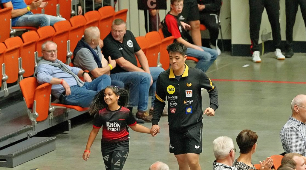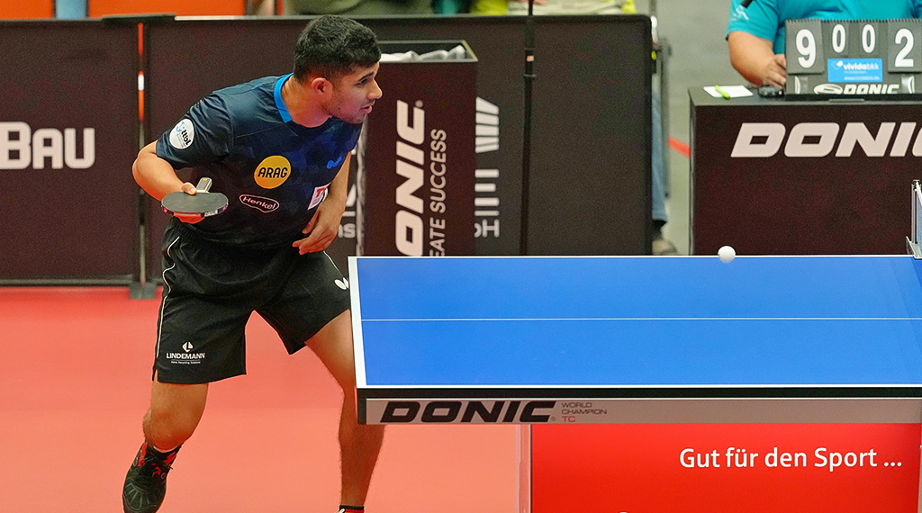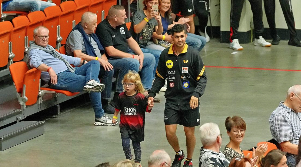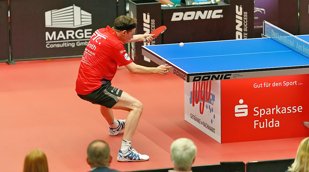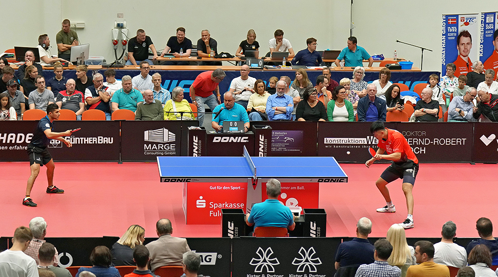 Beginnen wir unsere Betrachtung beim zweiten Einzel des Dänen Jonathan Groth, der schon zweimal für den TTC RhönSprudel Fulda-Maberzell aufgeschlagen hatte. Jeder wusste, der Sport irgendwie riecht, dass Groth es besser machen wollte als in seinem Eröffnungseinzel, das er, völlig gehemmt und völlig nervös für seinen neuen Klub, glatt gegen Dang Yiu verlor; nichts klappte da. Aber jetzt, da wollte Groth den TTC-Anhängern und dem Fuldaer Publikum etwas zurückgeben. Mutiger wollte er sein, beherzter, mit passender Körpersprache, seine offensive Stärke und Vorhand ins Spiel bringen. Ein Vergleich auf Augenhöhe sollte es werden. Auch wenn der Gegner Kanak Jha war, Düsseldorfs Nummer eins. Wie Groth auch ein Zugang, beide also für neue Team aktiv.