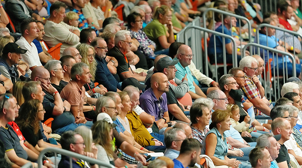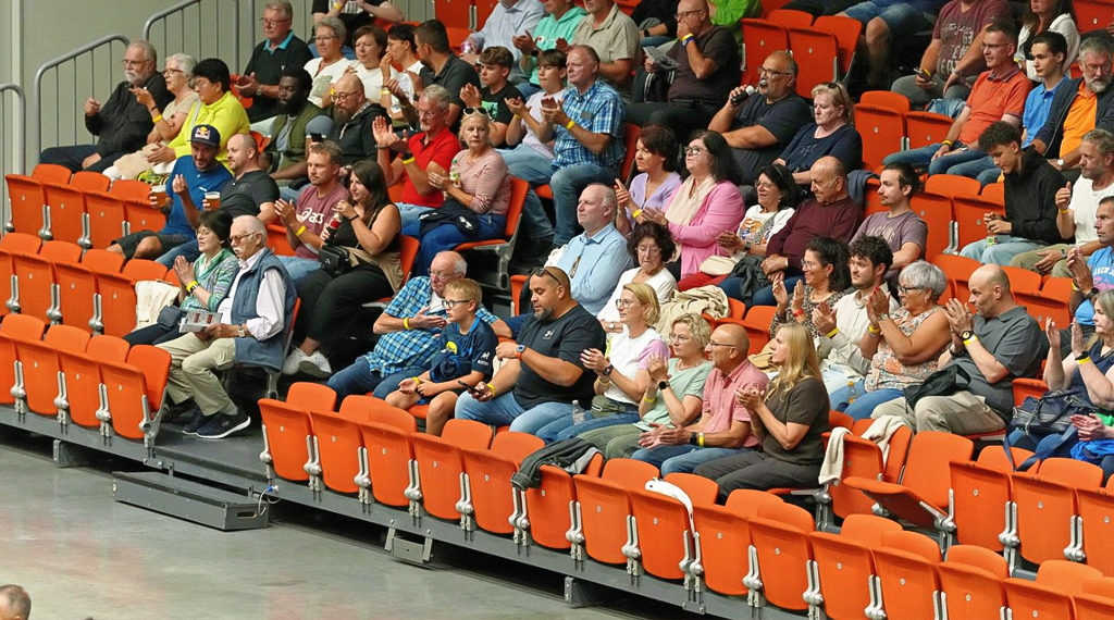 Er pushte sich von Beginn an, blockte früh, holte schnelle Punkte - und er nahm das Publikum durch seine Körpersprache mit. Er zündete es an. Und das badete darin. Fix lag er mit 5:0 vorn im Ersten, Dima-Sprechchöre begleiteten ihn. Das Publikum taute auf an diesem Abend. Endlich. Dima schnappte sich den Ersten. 11:7.