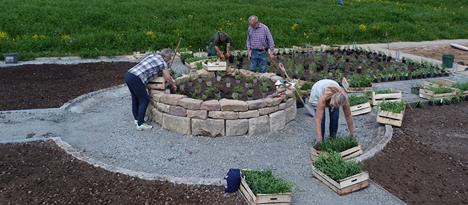 Er stellte seine Idee dem Vorstand der GdS vor und dieser entschied, sich mit einer Pflanzenspende im Wert von 3000 Euro zu beteiligen. Mit Dorothea Steffen, stellvertretende Präsidentin des Vereins und gelernte Gartengestalterin, hatten die Mitglieder aus Osthessen nicht nur eine große Befürworterin, sondern auch gleich die Planerin für den Bauerngarten im Boot. „Die Entscheidung für ein Engagement in Fulda ist uns leichtgefallen, denn die Mitglieder der Regionalgruppe haben sofort ihre ehrenamtliche Mitarbeit für den Bau und die Pflanzung der Anlage zugesichert“, erzählt Steffen und fügt an: „Es ist ein Anliegen der Staudenfreunde, das Wissen über diese Pflanzen nicht nur zu bewahren, sondern weiterzuentwickeln und deren Verwendung exemplarisch aufzuzeigen.“ Die GdS unterstütze nur Projekte, die auf die Zukunft ausgerichtet seien. Das sei hier der Fall, da der Bauerngarten auch nach der Gartenschau erhalten bleiben soll, so die Vizepräsidentin. Von sich selbst sagt sie, dass ihr die Begeisterung für Gärten und die Verbundenheit mit der Natur in die Wiege gelegt wurde. Aufgewachsen auf einem Bauernhof, erlernte sie durch ihre Mutter, die selbst einen preisgekrönten Garten geschaffen hatte, die Grundlagen des Gärtnerns und machte ihre Leidenschaft zum Beruf.