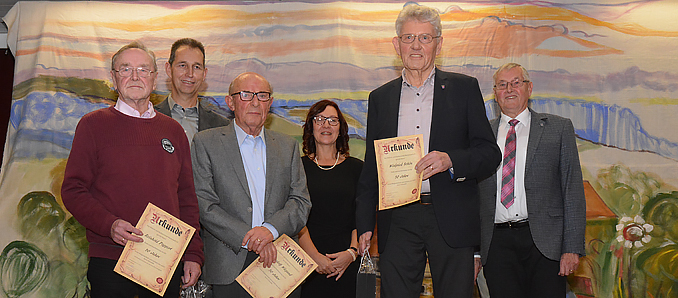 Stehenden Applaus erhielt Winfried Schön, der in den 50 Jahren auf 49 Jahre Vorstandstätigkeit zurückblicken konnte. Winfried Schön sei mit Video und Kamera nicht nur der Dorfchronist und habe einen unvergleichlichen Schatz an Bildern und Filmen zusammengetragen. Er sei schon zur Gründung Schatzmeister gewesen und habe den Verein von 1984 bis 1996 als zweiter Vorsitzender und ab 1996 bis 2015 als Vorsitzender geführt. Anschließen habe er sich weitere drei Jahre als Schriftführer bis 2018 zur Verfügung gestellt. Mit 700 Filmen und über 100.000 Bildern habe er mit Unterstützung seines Sohnes Michael Schön das Dorfleben dokumentiert und mit Mackenzell.de eine Homepage geschaffen, die Vorbild für viele andere Dörfer geworden sei.