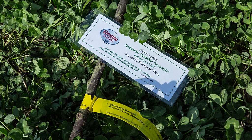 „Unsere Obstbaumpflanzaktion gibt es schon seit dem Jahre 2010. So wurden in der Region Fulda, schon über 400 Bäume gepflanzt – etwa 140 von ihnen, befinden sich hier auf unserer Streuobstwiese in Lütter. Zwei Drittel aller Familien, nehmen ihren Apfelbaum zum Pflanzen in den heimischen Garten mit nach Hause, ein Drittel der Familien, entscheidet sich dafür, ihn auf der Streuobstwiese zu pflanzen. Unterstützt werden wir bei unserer Pflanzaktion von der Gemeinde Eichenzell. Die Förstina-Pflanzaktion ist ein wichtiges Symbol auf vielfältiger Weise. Zum einen, sind auch wir, als Mineral- und Heilquelle, wie ein Apfelbaum in der Erde verwurzelt ist, fest in der Region verwurzelt. So ist unsere Pflanzaktion auch als Bekenntnis zur Region zu verstehen. Die Menschen, die hier leben, trinken unsere Produkte. Als Dankeschön, möchten wir diesen Menschen auch gerne etwas zurückgeben.“