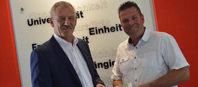 Peter Becker, Leitung DRK Akademie, mit dem Gewinner Markus Janssen (rechts im Bild) . Foto: DRK