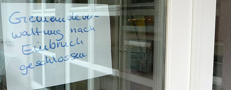 Poppenhausen/Wasserkuppe. In den frühen Morgenstunden des heutigen Donnerstages wurde mit brachialer Gewalt in das Poppenhausener Rathaus eingebrochen. Der Einbruch konnte festgestellt werden, als etwa gegen 7:30 Uhr die ersten Bediensteten zur Arbeit ins Rathaus kamen und diese sogleich nach der Polizei sowie dem Bürgermeister riefen. Wie sich bei der Streife herausstellte, gelangten die Täter durch ein ausgehebeltes Fenster im Erdgeschoss ins Gebäudeinnere. „Die Täter waren offensichtlich sehr gut vorbereitet“, so ein Sprecher der Polizei gegenüber fuldainfo. In diesem Sinne wurden Fenster, die nicht mit Rollos gesichert waren, mit schwarzer Folie abgehängt, diese verhinderten, dass man von Außen nicht sehen konnte, was sich im Innern des Rathauses abspielte. Das Gebäude wurde von der Kripo komplett durchsucht.