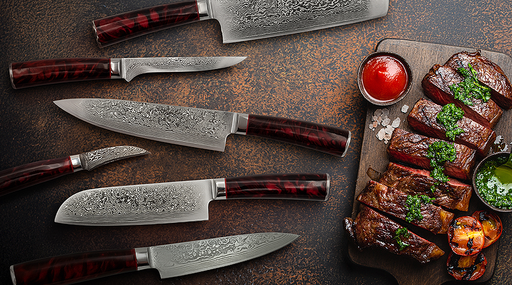 Doch nicht nur im Einsatz, auch in puncto Pflege und Langlebigkeit überzeugt die Serie mit durchdachten Details. Die Klingen sind im europäischen Standard mit einem Schleifwinkel von 15° gefertigt. Das sorgt nicht nur für außergewöhnliche Schärfe, sondern ermöglicht auch ein besonders einfaches Nachschärfen. Um die Qualität langfristig zu erhalten, empfiehlt sich die Reinigung per Hand sowie die Nutzung geeigneter Schneidunterlagen aus Holz oder Kunststoff. So bleibt die Schneide geschützt und die beeindruckende Schärfe der Damastklinge dauerhaft erhalten.