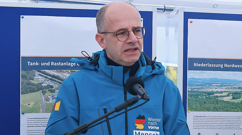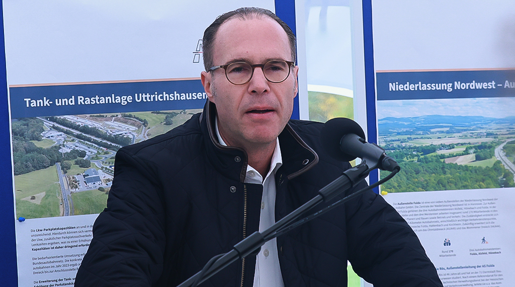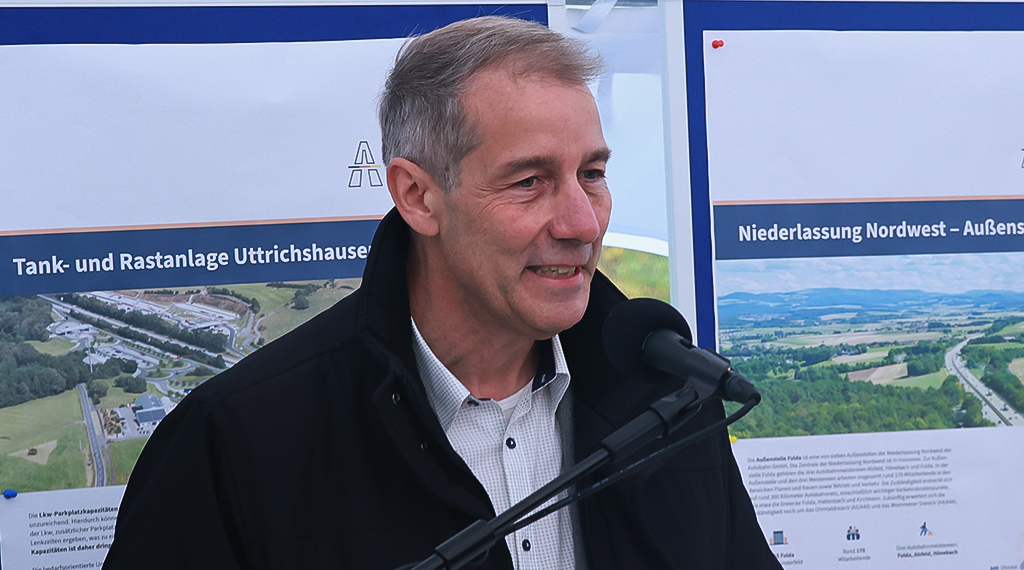Dr. Michael Günther, Vorsitzender der Geschäftsführung der Autobahn GmbH des Bundes, verwies auf das langwierige Ärgernis, dieses der Vertragsunterzeichnung vorausgegangen war. Dass der Streit, der 12 Jahre überdauerte, nun endlich beigelegt werden kann und man von nun an optimistisch in die Zukunft blicken könne, sei erfreulich. „Ich bin froh, dass die Vereinbarung heute geschlossen werden konnte, die nicht nur den Kalbacherinnen und Kalbachern, sondern auch den Verkehrsteilnehmerinnen und Verkehrsteilnehmern zugutekommt“, so Günther bei der heutigen Vertragsvereinbarung. Das Projekt konnte letztlich nur zu einem guten Ende gebracht werden, weil sich alle Beteiligten auf ein gemeinsames Ziel verständigt hätten. Günther dankte Bürgermeister Mark Bagus (parteiunabhängig) und mit ihm den gemeindlichen Gremien und den Bürgerinitiativen, die berechtigte Gründe vorbrachten. Dem anwesenden heimischen Bundestagsabgeordneten Michael Brand (CDU) dankte er für seine Bemühungen, den Streit beizulegen und für die geführten Gespräche. Außenstellenleiterin Julia Rös (Außenstelle Fulda) dankte er für das lösungsorientierte Handeln und ihr einbringen. „Wir von der Autobahn GmbH des Bundes sind der Auffassung, dass hier für alle Beteiligten wirklich viel erreicht wurde“, so der Vorsitzende der Geschäftsführung der Autobahn GmbH des Bundes Dr. Michael Günther, der abschließend auf die geringe Verfügbarkeit an Lkw-Stellplätzen auf Rastanlagen als bundesweites Problem einging, die nicht nur für die Lastwagenfahrer ein Problem darstellen, sondern auch für die Verkehrssicherheit insgesamt. Deutschlandweit fehlten etwa 20.000 Lkw-Stellplätze.