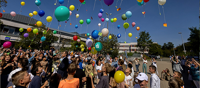 „Freut euch auf eine tolle Zeit an unserer Schule. Sie ist jetzt auch eure GSO“, verkündete die Schulleiterin, bevor die Fünftklässler von den Schülern der G6c kleine Zuckertüten überreicht bekamen und mit ihren neuen Klassenlehrern in ihre Klassenräume gingen. Zum Abschluss des feierlichen Vormittags ließen die frisch gebackenen GSO-Schüler bunte Luftballons mit ihren Wünschen für die Schulzeit in den blauen Himmel steigen. +++