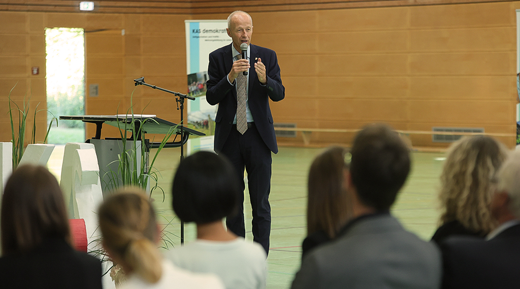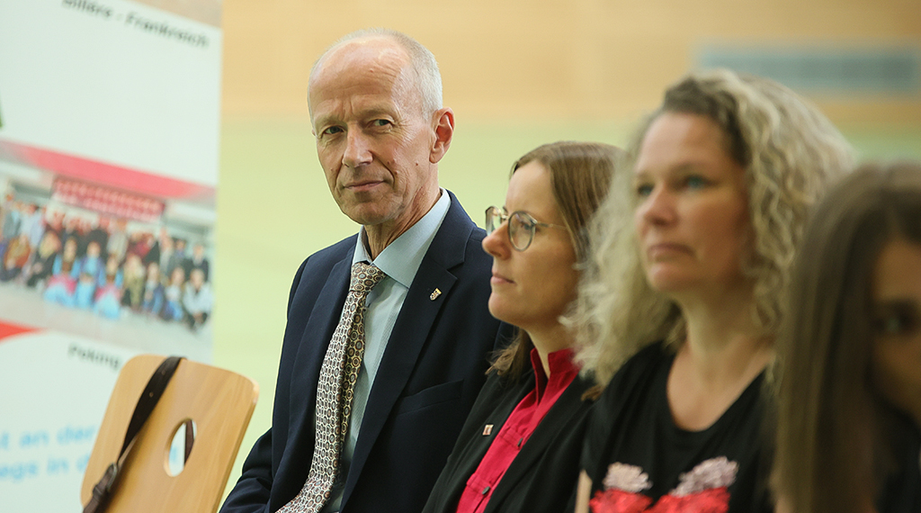 Minister Schwarz betonte in seiner Rede, dass die Region Fulda großartige Schulen habe, zu denen auch die Konrad-Adenauer-Schule in Petersberg gehöre. Er zeigte sich beeindruckt vom vielfältigen Angebot der Schule und wünschte allen Schülerinnen und Schülern einen erfolgreichen Start. "Der erste Schultag ist immer etwas Besonderes – voller Spannung, Aufregung und Neugier. Auch die kommenden Wochen und Monate werden wie eine kleine Abenteuerreise sein, die ihr gemeinsam mit euren Lehrern, Eltern und neuen Mitschülern meistern werdet", so der Staatsminister. Als Zeichen der Anerkennung überreichte er der Schule sechs Gutscheine im Wert von je 250 Euro.