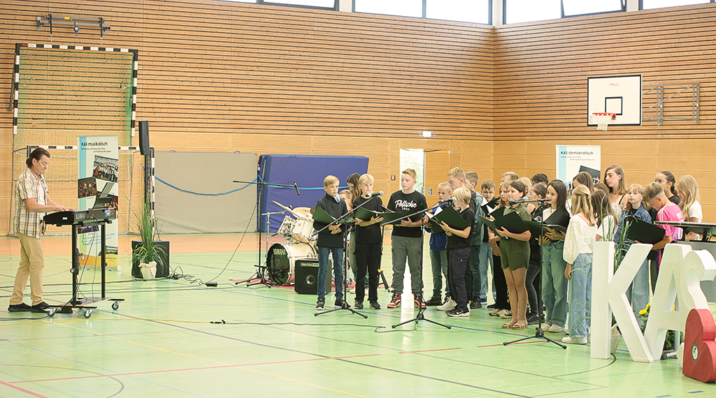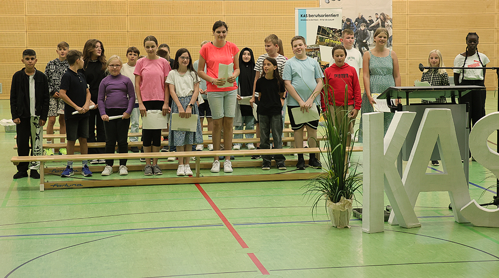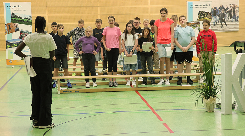 Schulleiterin Anke Schüler wies in ihrer Ansprache darauf hin, dass viel Neues auf die "Neuen" zukomme, darunter auch die 90-minütigen Unterrichtsstunden an der Konrad-Adenauer-Schule. Sie stellte das umfangreiche Schulprogramm vor und ermutigte die Schülerinnen und Schüler, sich etwas zuzutrauen. "Eure Lehrer sind eure Talentscouts, denn in jedem von euch stecken Talente, auch wenn ihr sie vielleicht noch nicht entdeckt habt", so Schüler. Das Rahmenprogramm der Feier gestalteten die Chorklasse 6 und weitere Gruppen mit musikalischen und künstlerischen Beiträgen.
