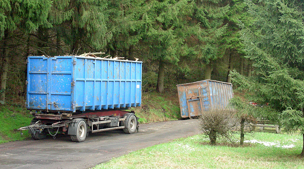 Die Rodungsarbeiten sind bereits voll im Gange: Auf dem Parkplatz an der L3170 zwischen Bodes und Buchenau wird das Schnittholz verladen